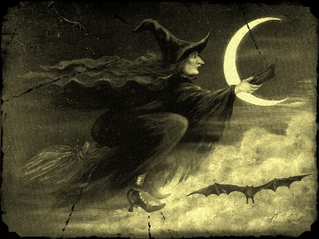 A spirit flits, on her broom she sits